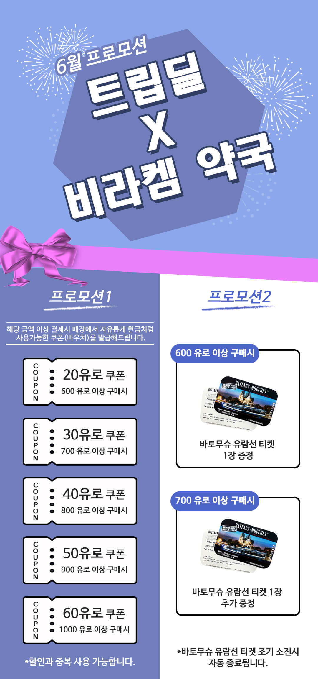 | 비오템 증정 사은 행사 1. 전제품 70유로 이상 구매시 - 3종 미니 여행 선물 증정 (선택 가능) 2. 남성 비오템 구매시, 여행용 파우치 증정 기간 : 제품 소진시 까지 |