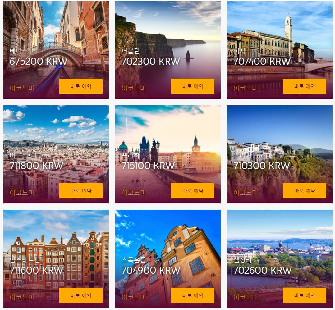 특가는 이코노미, 비지니스 클래스 왕복 항공권에만 적용. 단 비지니스 클래스를 운영하지 않는 구간의 경우 퍼스트 클래스에도 적용.